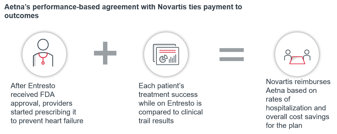 Entresto is a high-cost drug which, when administered in the course of treatment, can significantly reduce the risk of heart failure. Novartis’s pay-for-performance deal with insurers links the financial terms of the contract to a reduction in the portion of its customers who are hospitalized for heart failure.